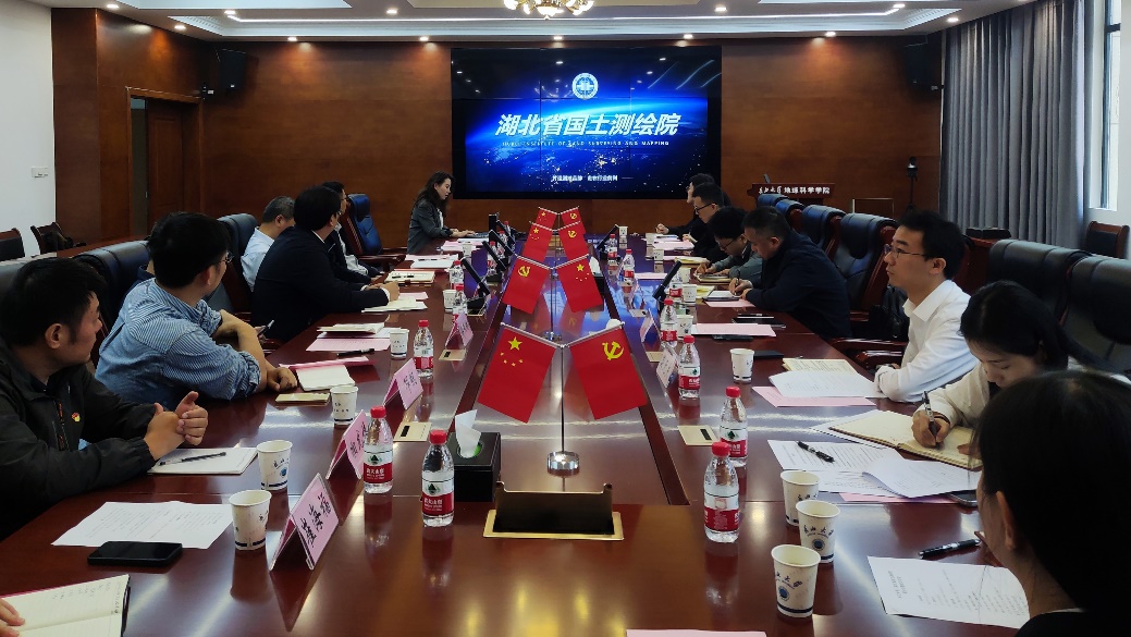 与湖北省国土测绘院就党建与业务深度融合开展研讨交流。地信系教师张方利简要介绍了地信系教工党支部的党建情况,学院党委书记杨全辉介绍了学院党建引领推动事业高质量发展情况,表示党建工作必须与业务深度融合发展。湖北省国土测绘院副院长熊中招介绍了湖北省国土测绘院的党建情况,表示将以此次活动为契机,深化与嘟嘟成人网