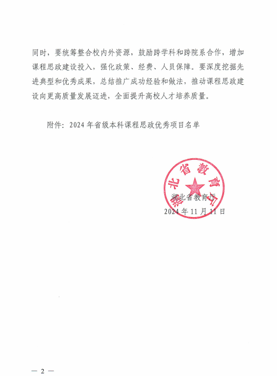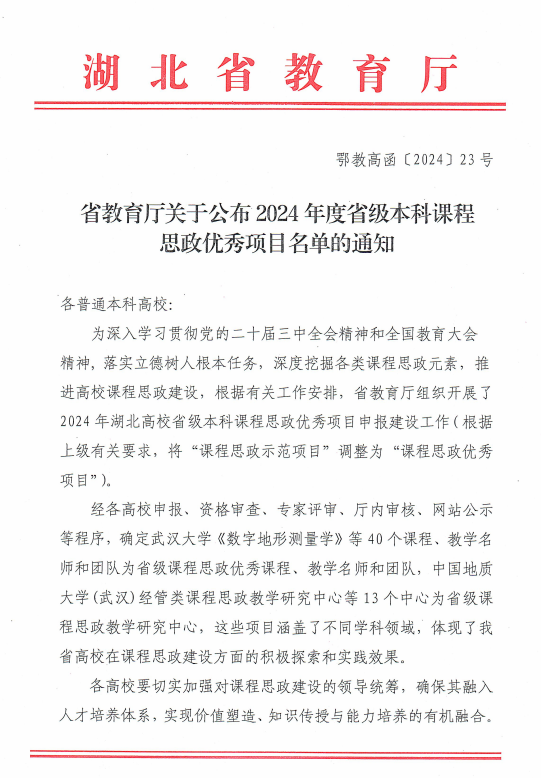 近日,湖北省教育厅公布了2024年度省级本科课程思政优秀项目名单,全省共评选出40项普通本科教育类课程思政优秀项目,嘟嘟成人网