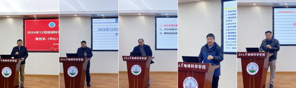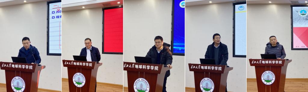 会议第二阶段,各系(中心)主任进行年终述职,石油系主任饶松,地质系主任李涛,地科系主任刘彬,地信系主任刘远刚,实验中心主任丰勇依次上台汇报,按照学院年初制定的目标任务对标对表认真梳理,谈成绩,找问题,话发展。