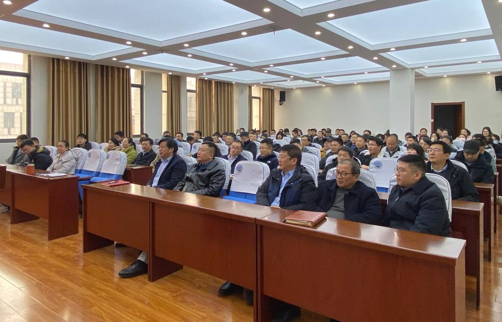 在石油科技大楼C301会议室召开全院教职工大会暨年终总结会,总结复盘本年度学院重点工作,进行各系 (中心) 主任年终述职,并开展政治理论学习。会议分三个阶段进行,会议由院长朱光有主持。