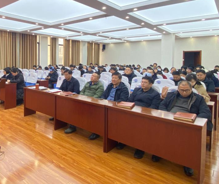 在石油科技大楼C301会议室召开全院教职工大会,传达2025年学校工作部署会议精神。
