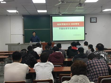 在武教-A106举行2019-2020学年学籍处理学生座谈会。会议由党委副书记任倩主持召开,参加会议的有龚文平副院长、辅导员潘志远,以及全体受学籍处理学生。