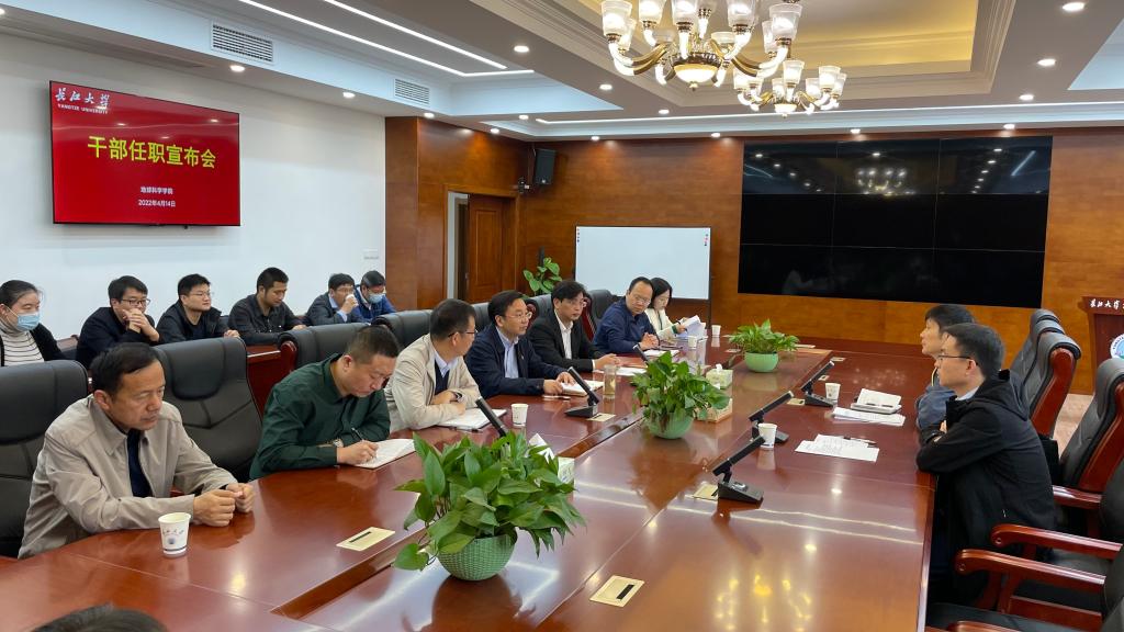 副校长吕一兵发表讲话,要求学院新领导班子“讲团结、讲奉献、讲业绩、讲廉洁”,勉励全院教职工齐心协力,在国家一流学科建设和地质学博士点申报等重点工作中取得好更好成绩。