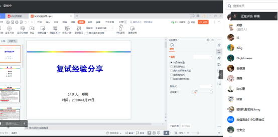 特邀18级考研优秀学子郑娜、刘嘉祺召开线上考研复试经验分享会。会议由辅导员潘志远主持。