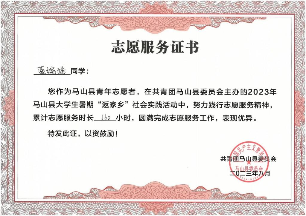 为了度过一个有意义的暑假,地质(资源)22102的蓝婉嫣在古寨瑶族乡人民政府开展“返家乡”社会实践活动。一个月里,她抄写会议记录、整理台账、宣传禁毒、录入廉政档案、理整差旅账单等,这些工作让她对基本政务知识有了一定的了解,熟悉了乡政府各个部门的基本职能,也对家乡的历史、文化和社会经济发展有了更深的了解,增强了对家乡的认同感和归属感。蓝婉嫣说很感谢此次暑期社会实践,让她为家乡的发展贡献出自己的力量,在她深入基层了解社会的同时,提升了自己的服务意识和实践能力。