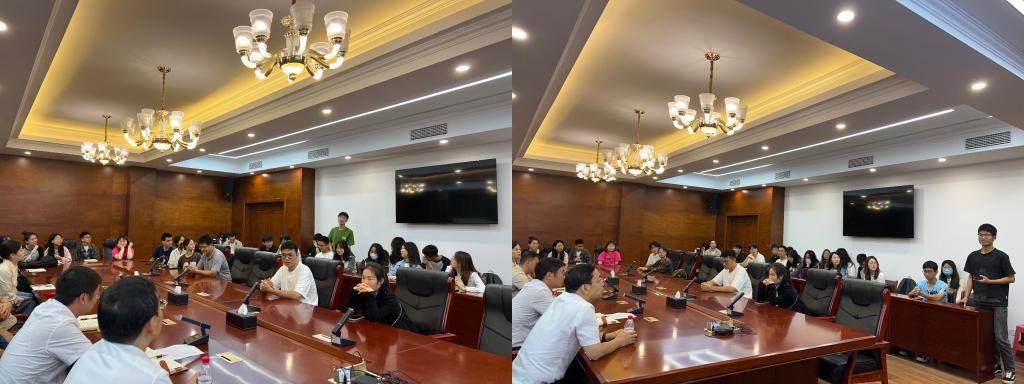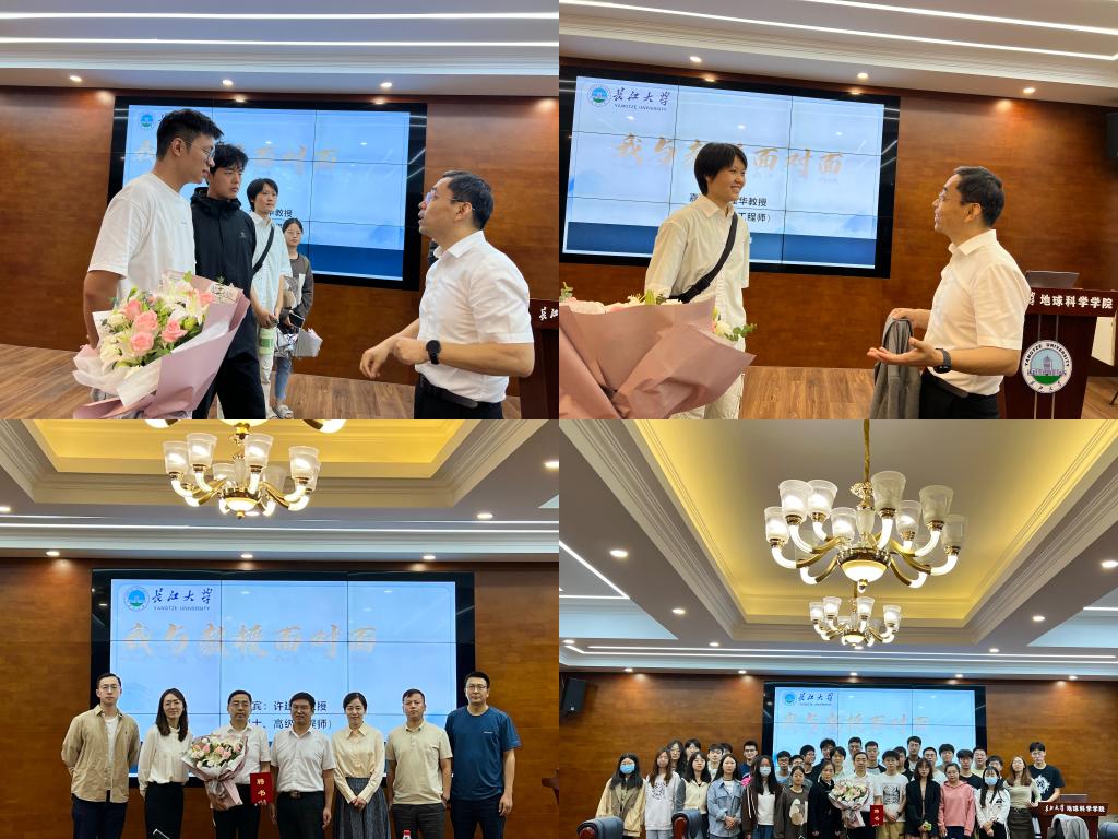 于石油科技大楼C201会议室举行“我与教授面对面”座谈会。会议由许建华教授主讲,学院副院长江山主持,党委副书记冯舒、部分老师及21级本科生和23级研究生共52人参会。