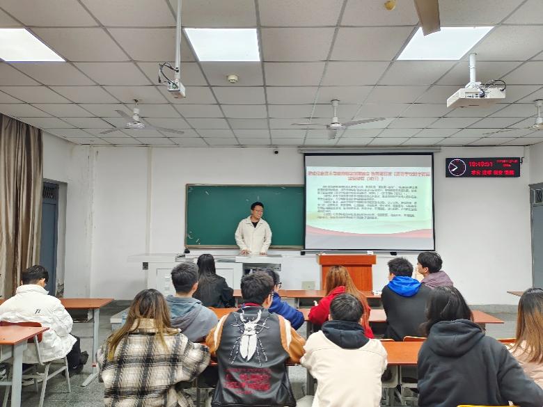 研究生会全体成员在武教B-201召开十一月份政治理论学习会议,会议由研究生会副主席韩奎奎主持。