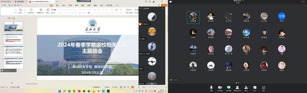 学生事务办公室接到校党委学生工作部工作要求后,于2月20至22日组织全体研究生参加以班级为单位,通过腾讯会议等平台召开的2024年春季学期返校安全教育班会,会议由各班班长主持。