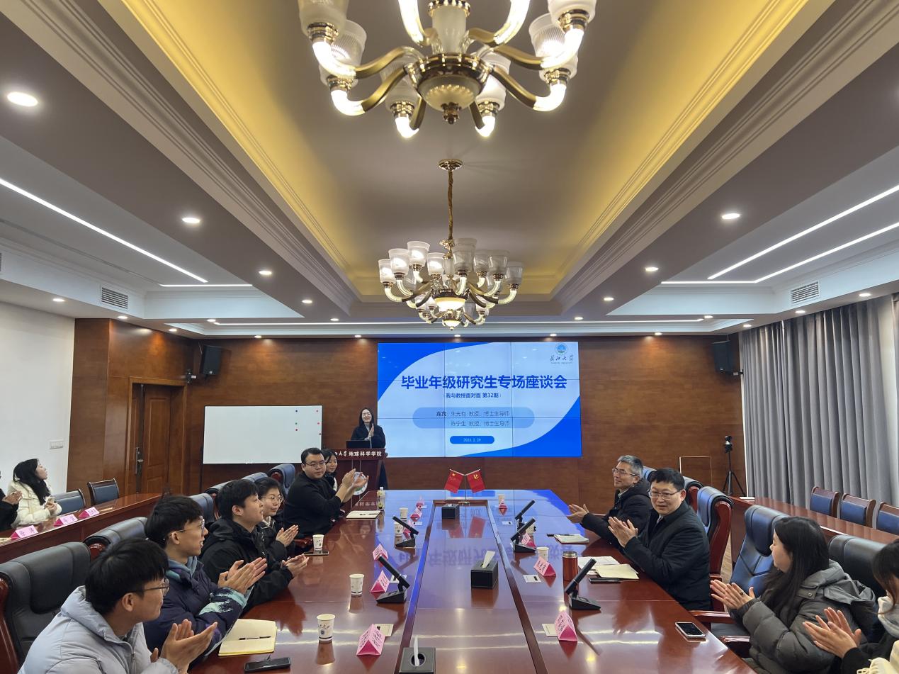 之后,陈宁生教授真诚的分享了自己“选择长大的五个理由”,并分享了带研究生到泥石流灾害现场取样、发SCI论文的过程,希望大家抓住机遇留院建设,在学校“爬坡”的关键期争项目、出成果、做贡献。对于同学们提出的现阶段困惑,如“不擅长科研写作、对读博的年龄焦虑、博士毕业去向”等问题,陈教授耐心鼓励大家执着于自己热爱的专业,把志向和目光放长远,将实现个人价值作为学业与职业规划与选择的重要参考因素,让青春和智慧在科研事业中闪光。
