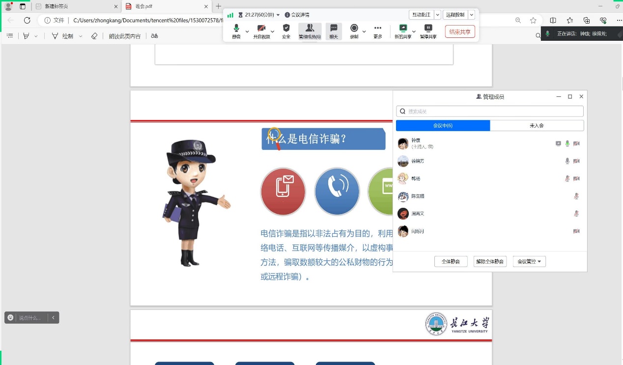学生对电信诈骗的防范能力,强化安全防范意识,引导同学们把握正确的学业、就业规划方向。希望同学们能提高反诈意识,珍爱生命,明确职业目标,走出属于自己的人生之路。
