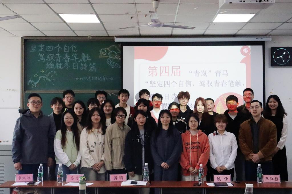 “青岚”青马学习小组于寒假期间开展了主题为“坚定四个自信,驾驭青春笔触,绘就冬日诗篇”实践活动,取得良好效果。3月28日中午,“青岚”一组成员在武教A105开展了寒假实践成果汇报展示,学工办王红桥老师、黄瑱老师、姚佳老师、乔宇老师等参加。