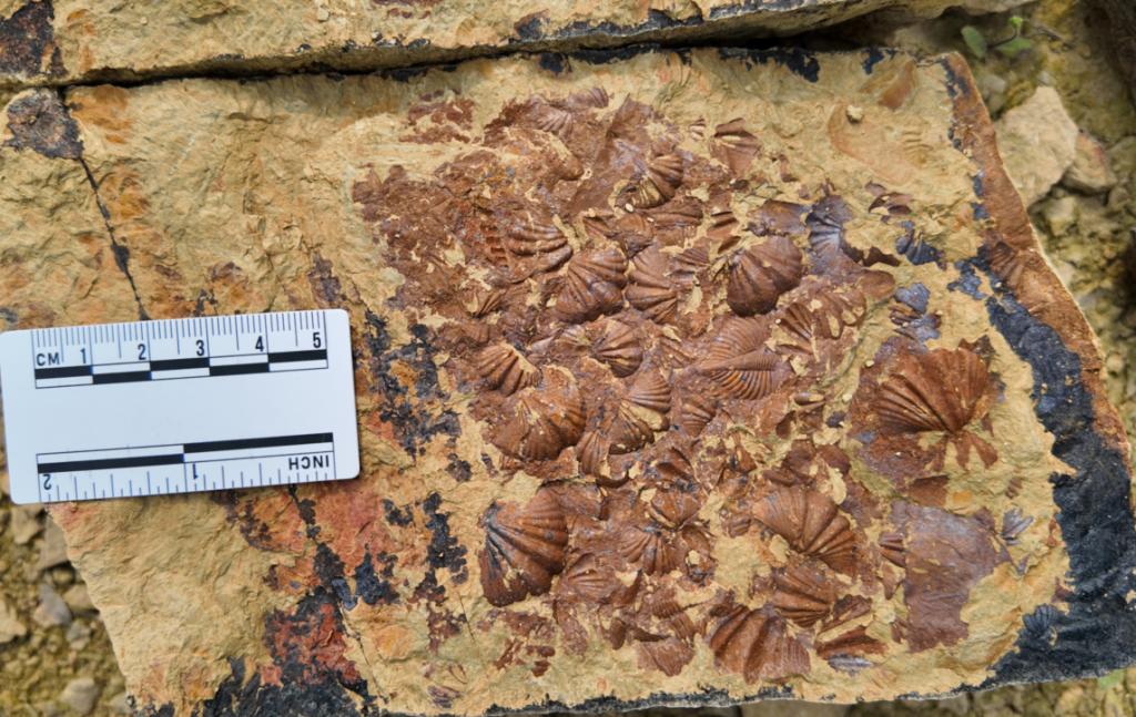 同学们以小组合作的方式展开探索,不一会儿,惊叹声传来“哇,这也太厉害了!”一个小组率先挖出一块有数十个清晰腕足类生物和三叶虫的化石,瞬间吸引了全场同学的注意。当听到董老师“化石经常在局部同一层位分布,大家在附近继续发掘”的点拨后,更是引发了活动的高潮,“赌石”一般的体验,让同学们欲罢不能。