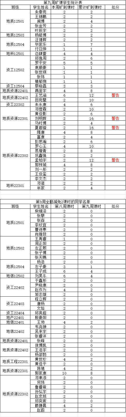持续开展常态化课堂考勤工作。现将第九周考勤情况通报如下: