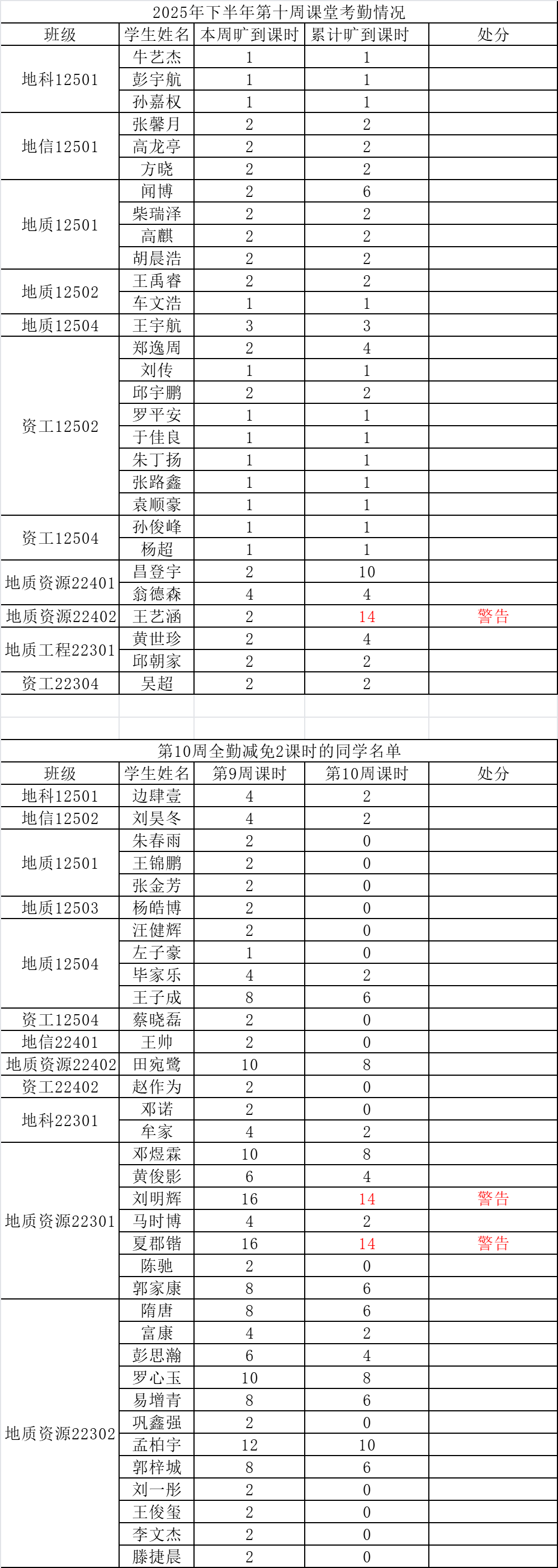 持续开展常态化课堂考勤工作。现将第十周考勤情况通报如下: