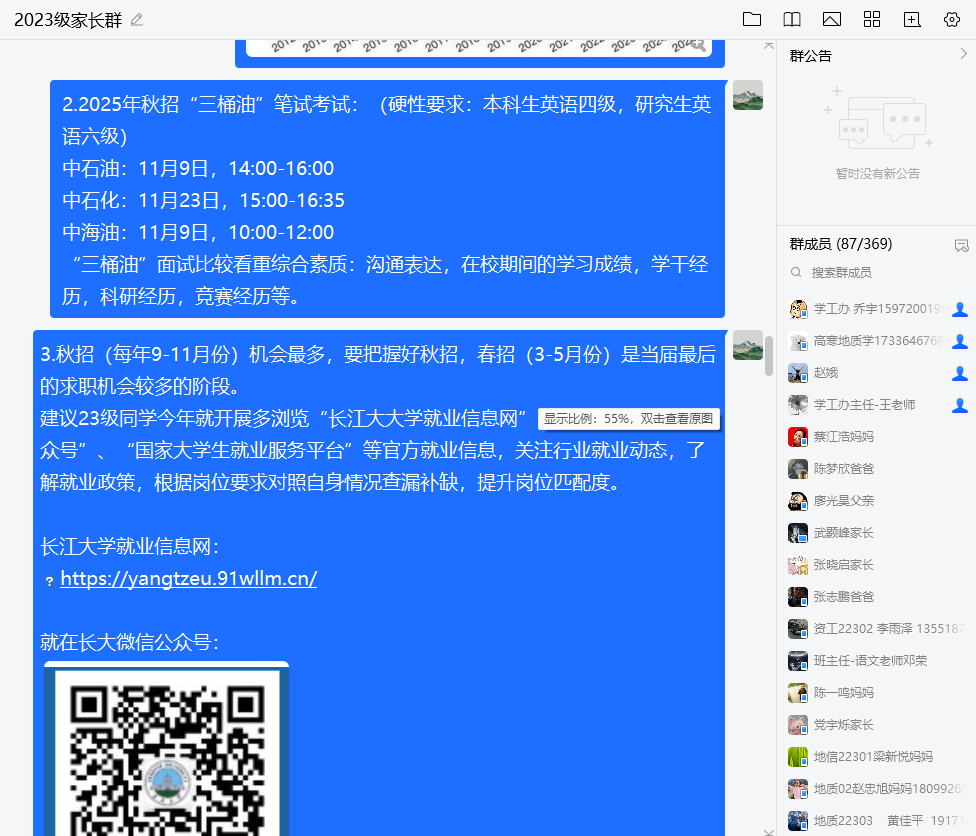 23级本科生本学期期中线上家长会顺利开展。会议由辅导员郭霖和乔宇两位老师主讲,全体23级家长参与。会议以“文字+图片”的形式,聚焦学生学业发展、生涯规划与心理健康等核心议题,旨在深化家校协同育人,共同助力学生成长。