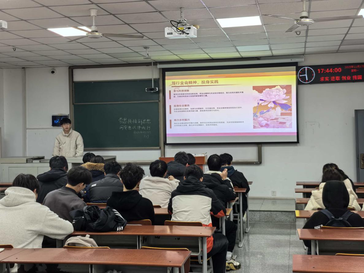 理论学习环节,团支部书记带领全体团员集中研读习近平总书记关于党的二十届四中全会的重要讲话、关于青年工作与网络安全工作的重要指示批示精神。通过原文诵读、要点解读的方式,引导团员深刻领会 “新思想” 的核心要义,准确把握习近平总书记对青年 “挺膺担当、守正创新” 的殷切期望。团员代表结合资源勘查工程专业特色分享感悟,资工(油光)22401班曾祥瑞同学表示:“习近平总书记重要讲话让我明白,专业学习既要扎根地质勘探的技术深耕,也要紧跟国家战略方向,把个人所学与国家安全、资源保障需求紧密结合。”