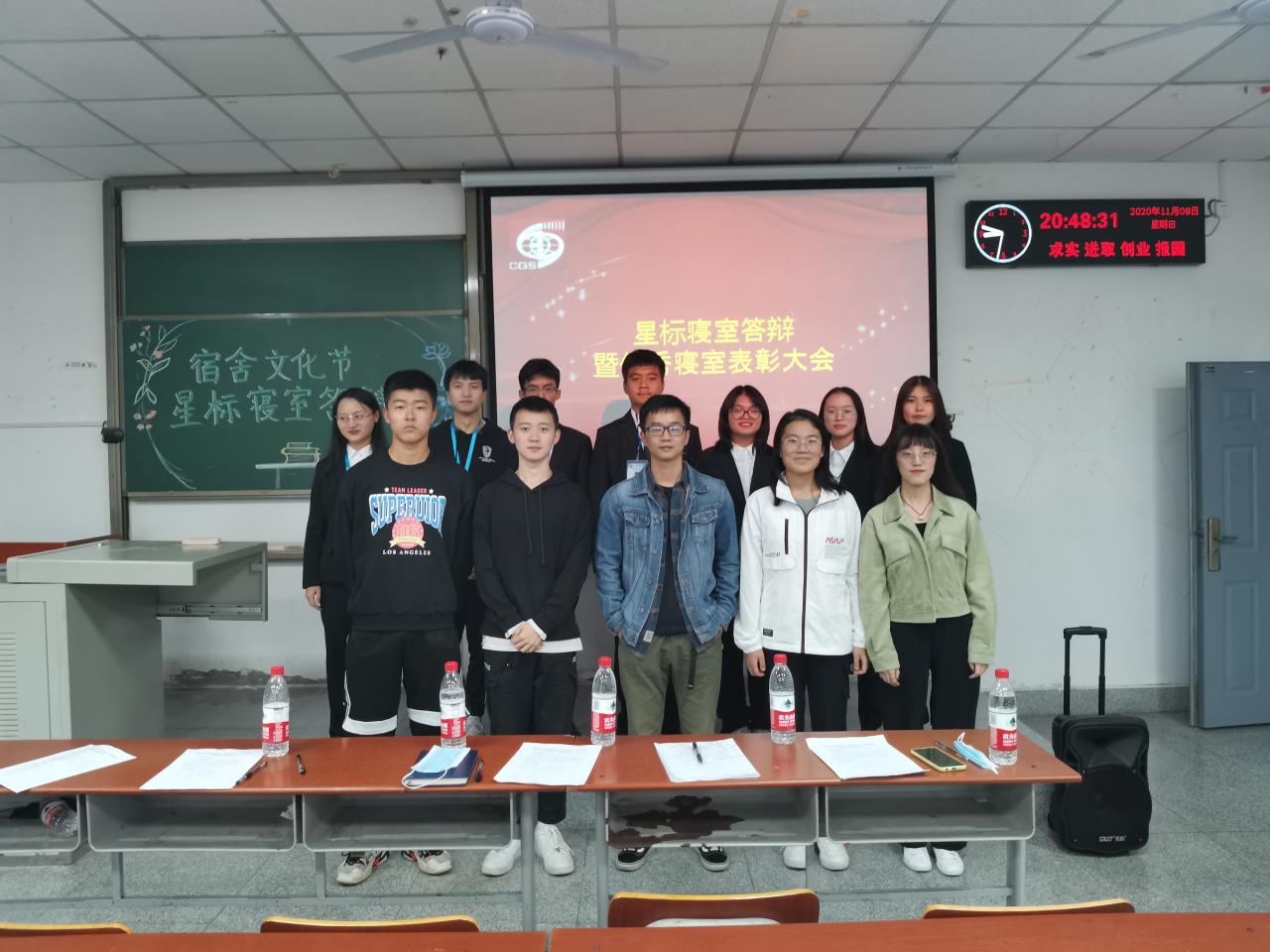 于11月8日下午7时于A-105举行了星标寝室答辩暨优秀寝室表彰大会。出席本次会议的有辅导员助理刘威、地科院团委学生会主席郑娜、副主席王健生、副主席李虹燚、副主席高德祥以及各个优秀寝室成员。