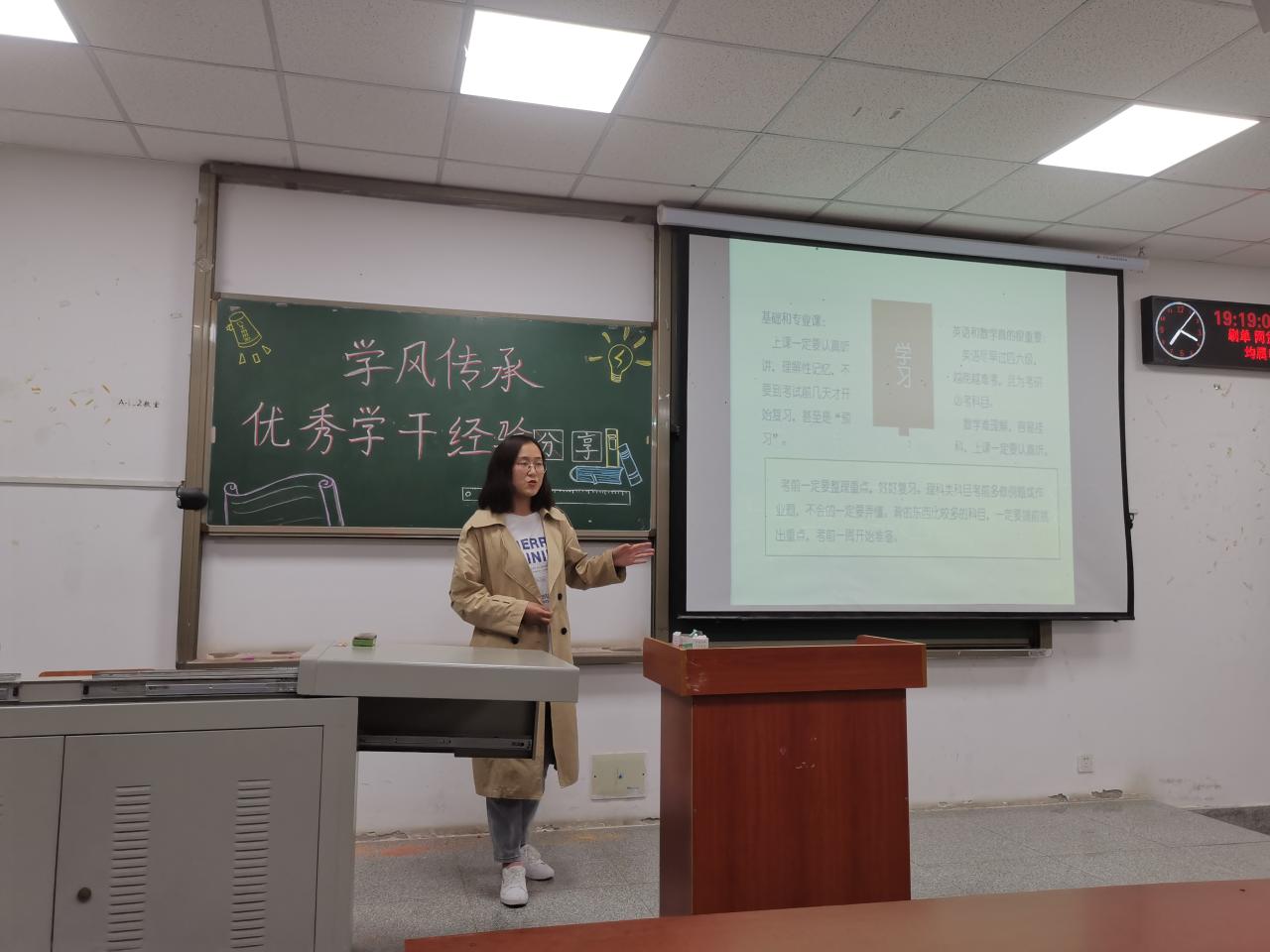 在地理信息科学专业的分享会上,主讲人有来自地信(测绘)21901的汤文惠学姐和地信21702并且已经被推免到中国地质大学(武汉)的任安晶学姐。汤文惠就学习和生活两个方面开始今天的演讲,在学习方面,她着重为新生们分享了学习英语的方法与经验;在生活方面,她希望新生们不宜贪多,不要轻易放弃,不要轻易否定自我并且要学会分清主次,合理安排时间,懂得调节情绪。任安晶为新生们展示了自己的优异成绩,分享了宝贵的学习经验,推荐了许多学习的资源,并将“自学自律、敢闯敢拼、良师益友、学无止境”的生活和学习态度分享给学弟学妹们。