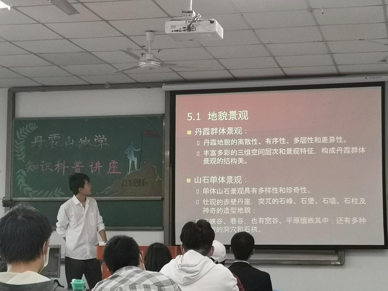 世界地质公园丹霞山科普知识讲座于武教A-105举行。本次讲座不仅是知识的分享,更是志愿精神的传递。
