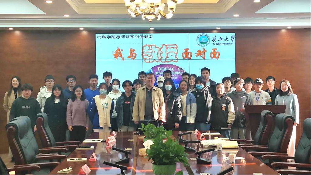 于石油科技大楼C201会议室举办地科院导师组系列活动之“我与教授面对面”座谈会(第十五期)。本次座谈会由地科院地信系何贞铭副教授主讲,党委副书记任倩主持,辅导员王红桥、郭霖以及20、21届30余名同学参加。