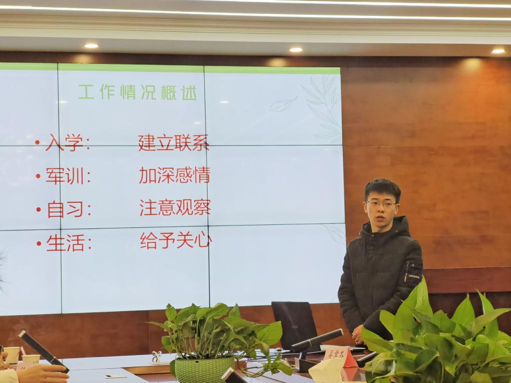 班导依次上台,通过PPT用数据、图文生动展示了新生入学以来的学习、生活情况以及班导们在引领团学工作、班级团建、学风建设等方面的特色方法,包括每天发布“军训日记”、利用班团会为班内同学庆祝生日加强班级凝聚力、用“群作业”功能收集截图保证青年大学习完成率、自编地学知识小测验提高学习积极性、坚持陪伴早晚自习将学风渗透在言行举止中……各种别出心裁的做法让大家在交流中,有了新办法,新收获。分享后班导们就自己工作中的问题,积极提问交流,直到九点半还意犹未尽。