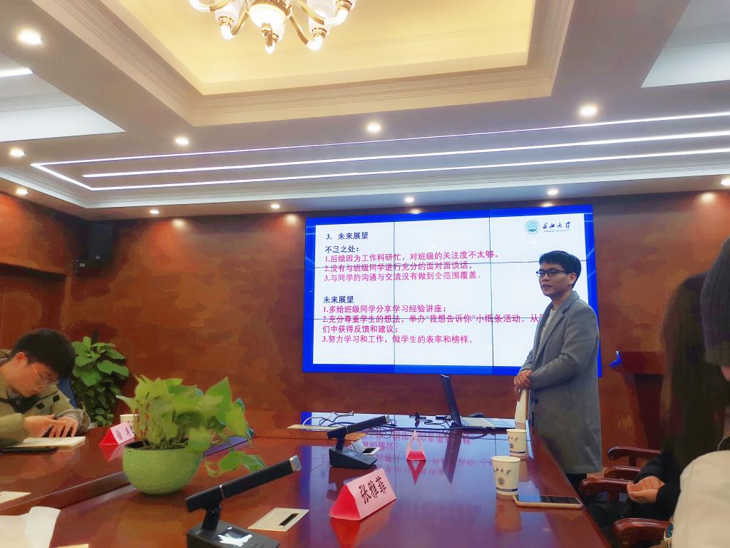 在简短的自我介绍后,地物学院三位嘉宾分别分享自己带班的经验体会,讲述了送诊发热学生、找高年级新疆籍学生帮助新生老乡更好的适应本地气候等问题的事例,及对“班导、班委配合”等方面的思考。随后嘟嘟成人网