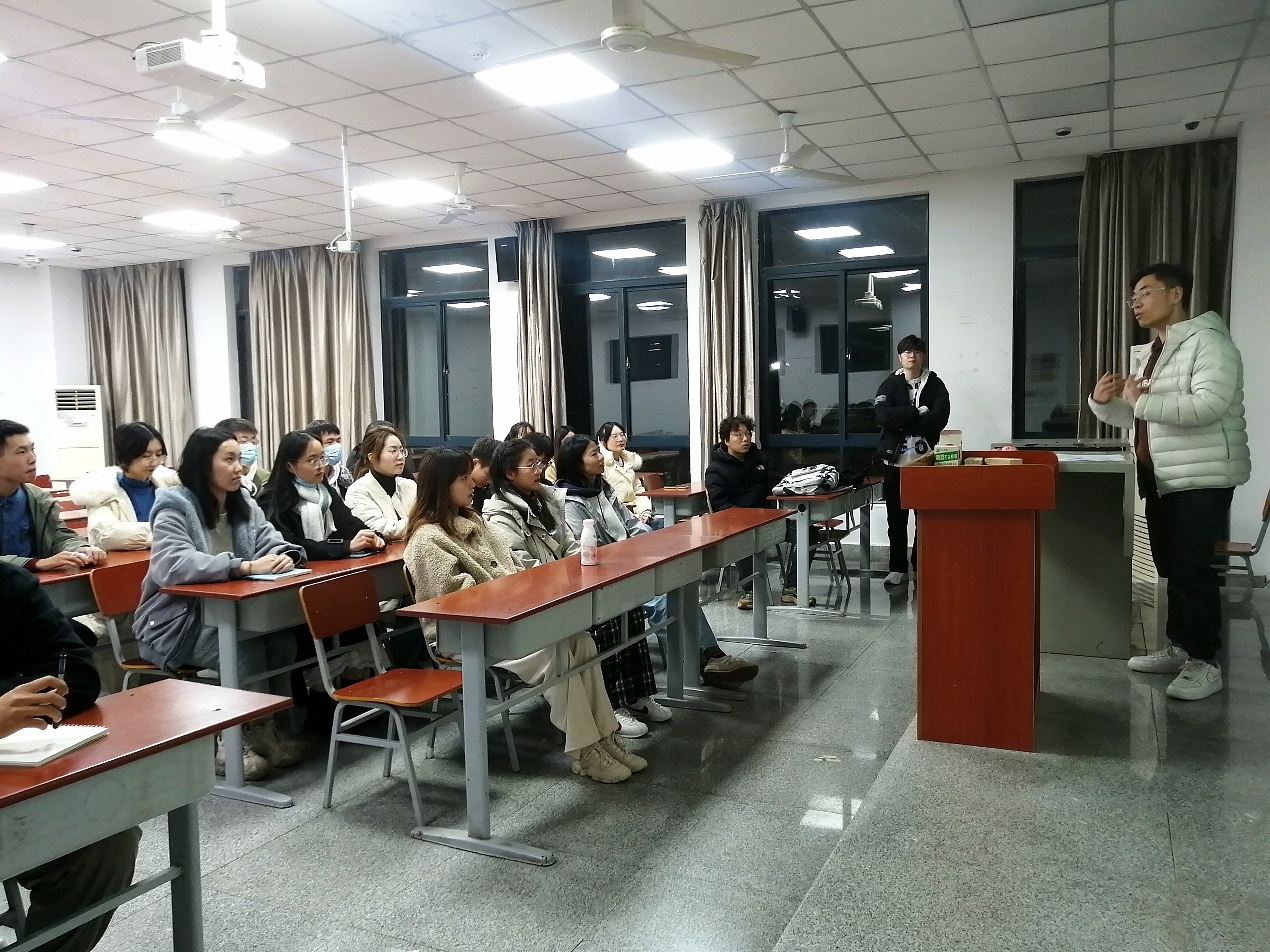 学工办兼职辅导员梁博主讲,研究生会主席陈剑峰主持,全体研究生参加。