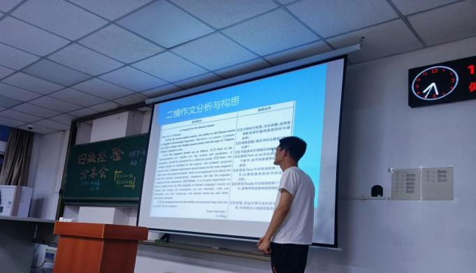 5月4日晚,柯诗嘉作为600分的高分“学霸”,为资工22101班与资工22103班做分享。他首先强调从“态度决定一切”,引导大家充分利用好手头的练习题,充分利用好早自习的时间背单词、练听力,从态度、词汇、方法等方面充分进行备考,以求全面提高。孙仁校学长从考研、就业等方面强调四级考试的重要性,随后,从做题顺序、做题方法等方面分享自己的高分经验。作为两次模考的评卷人,他还结合第二次英语模拟考试的情况,重点从作文构思以及翻译润色两方面提出备考建议。5月5日,李桥、荆怡迈、陈星兆等优秀学生代表,也从自身的考试经历出发,和同学们毫无保留的传授英语学习经验,叮嘱同学们以自身基础为起点,扬长补短,稳扎稳打,进一步提高自己的英语水平,为将来考研夯实基础。