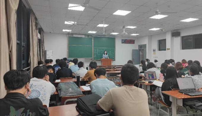 5月3日晚B-306教室,地信22101班、地信22102班全体同学聚精会神,聆听地产21901班徐漫歆学姐的分享,她按照四级考试的题型,引导大家“先易后难,层层攻克”,掌握各板块做题技巧。并提醒同学们多背、多积累、多练手:一是善于利于各种软件,养成每日积累单词的好习惯;二是从作文题型出发,多积累优美词句,替换老套的模板、句式;三是多做真题锻炼手感。