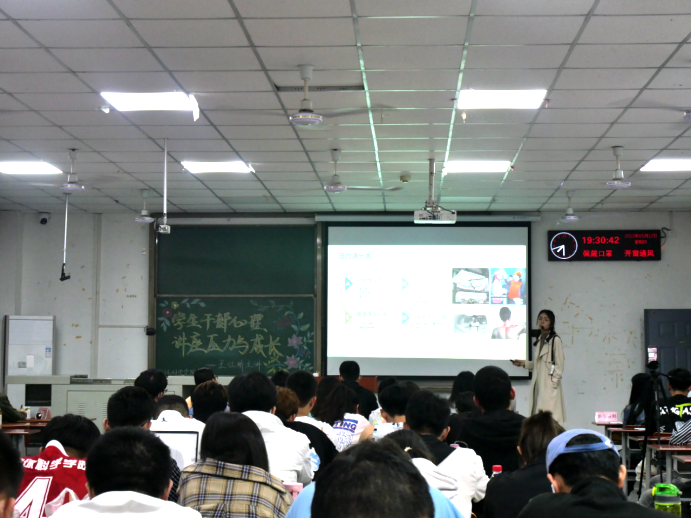 于武教A-103开展“压力与成长”主题讲座。讲座由嘟嘟成人网