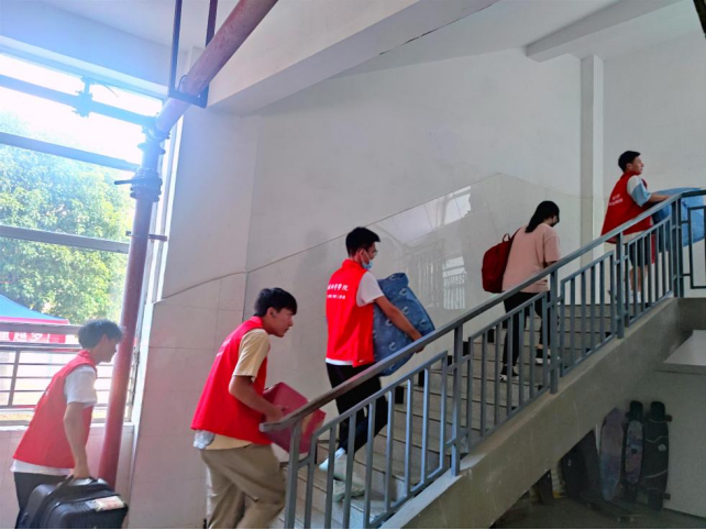 志愿者协助新生搬运行李