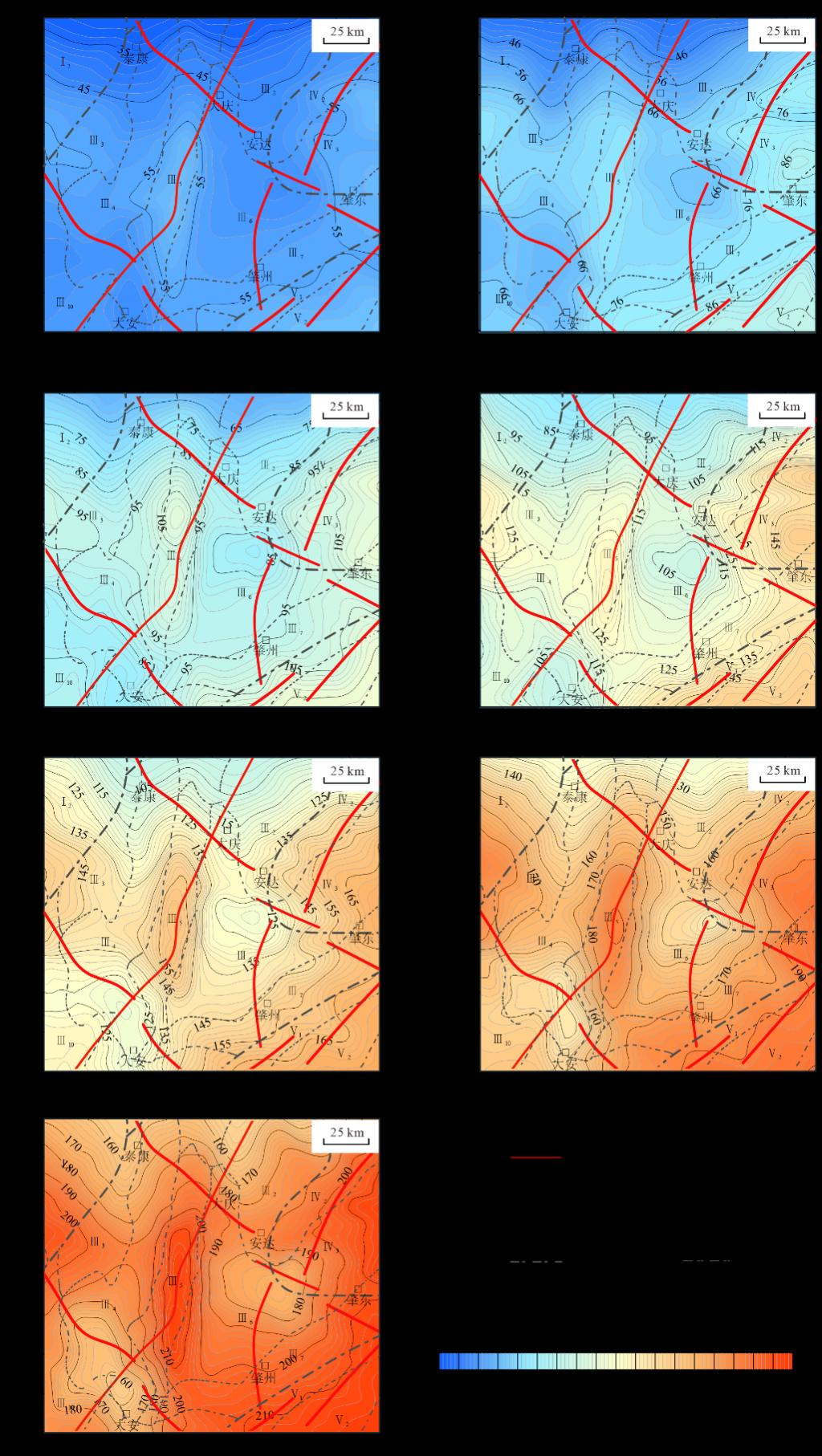 图2松辽盆地中央坳陷及邻区不同深度地温场模拟结果