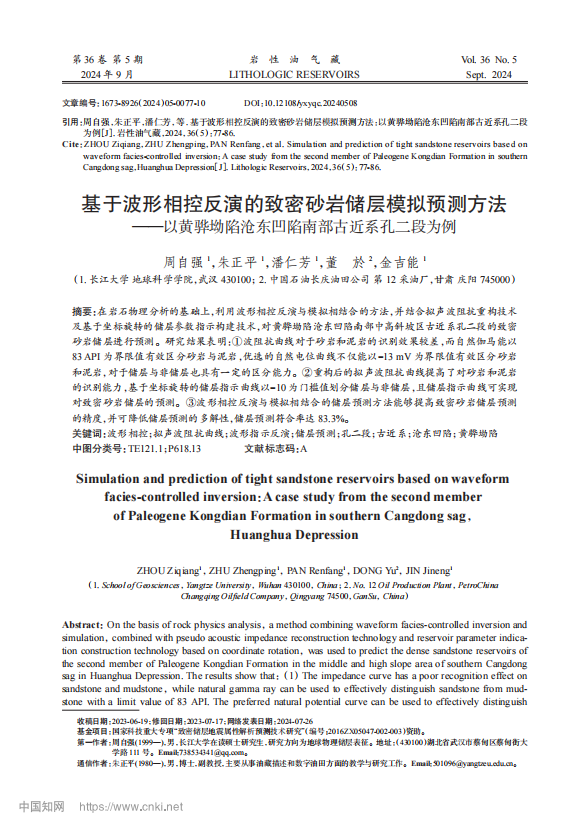 地科系教师朱正平博士在石油地质学领域主流期刊《岩性油气藏》上发表题为“基于波形相控反演的致密砂岩储层模拟预测方法”的研究论文。