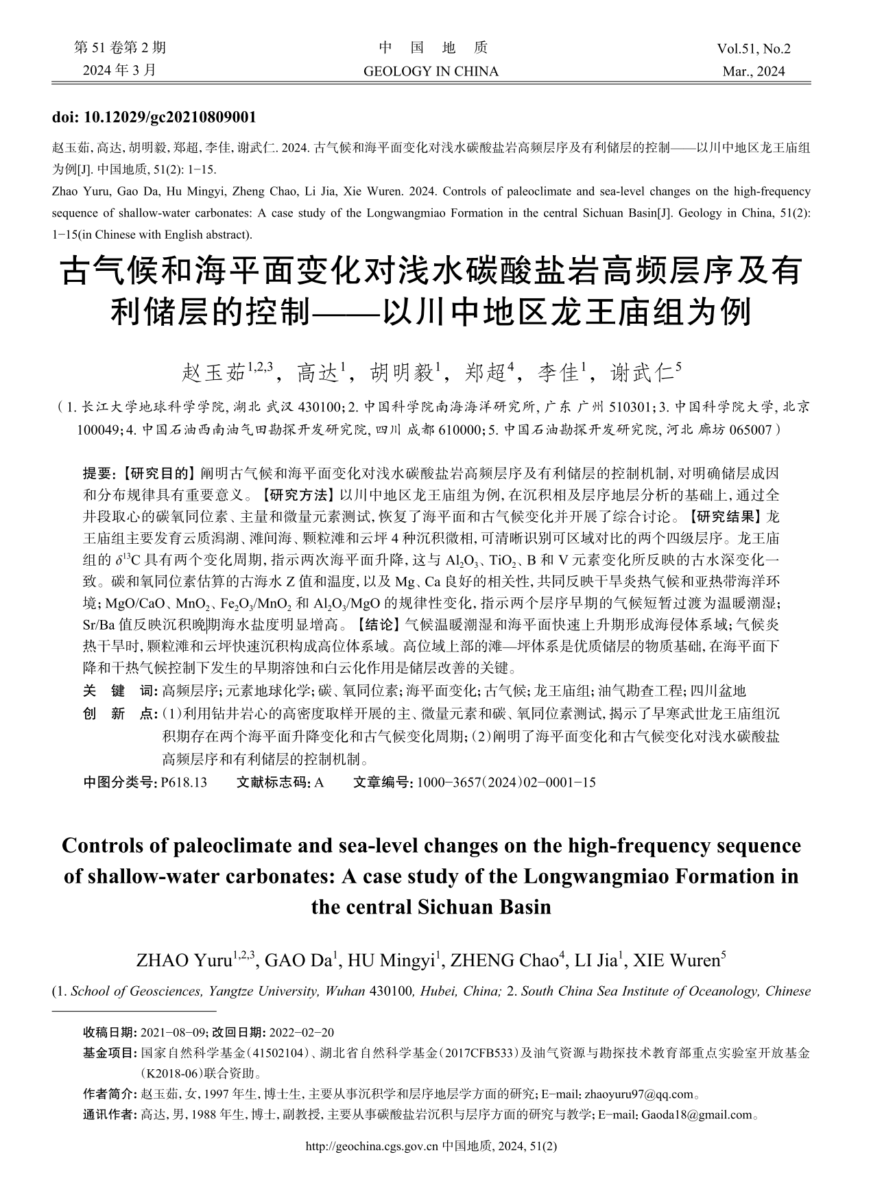 硕士生赵玉茹在中文核心期刊《中国地质》上发表了题为“古气候和海平面变化对浅水碳酸盐岩高频层序及有利储层的控制——以川中地区龙王庙组为例”的研究论文。嘟嘟成人网