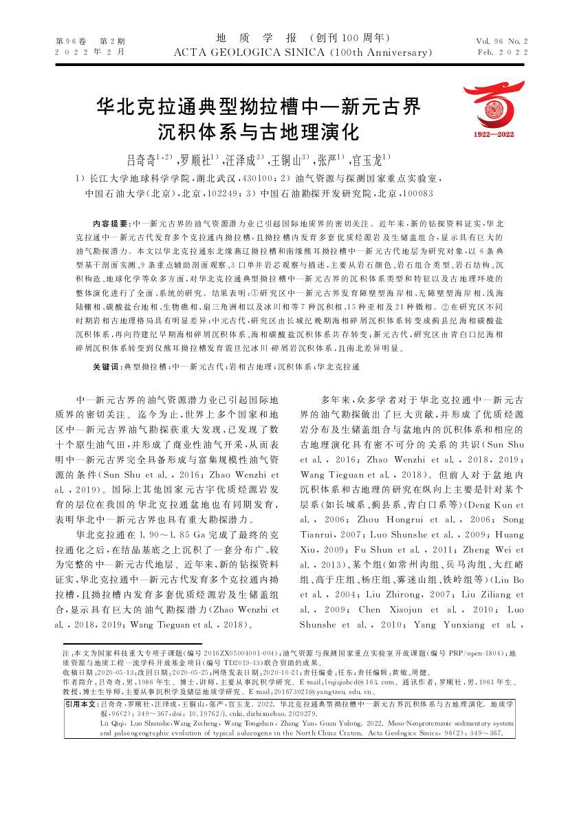 教师吕奇奇副教授以第一作者身份在石油领域重要期刊《地质学报》发表题为《华北克拉通典型拗拉槽中—新元古界沉积体系与古地理演化》的研究论文,该项研究得到了国家科技重大专项子课题、油气资源与探测国家重点实验室开放课题和地质资源与地质工程一流学科开放基金项目的资助。