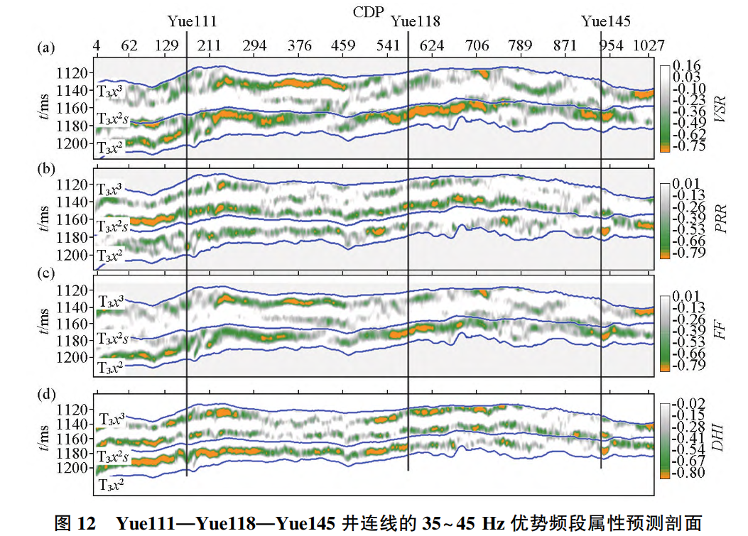 论文针对致密气储层地质特征复杂,常规AVO分析方法预测储层含气性分布精度较低的问题,改进了分频AVO预测方法及其流程,并在安岳气田须二段储层含气性预测得到应用。首先分析和论证了目的层单井岩石物理和正演模型特征,在此基础上改用基于小波变换下的分频AVO反演,优选出优势频段的AVO属性,融合构建含气性因子,进而对安岳气田须二段有利含气富集区带进行分布预测。结果表明,须二段气层主要表现为Ⅳ类AVO响应异常,优势频段35~45Hz的气、水层AVO响应比全频段的AVO响应的差异特征较明显,差异性更大,更易突出含气响应特征;AVO含气性敏感属性为相对横波速度差异、相对泊松比差和流体因子,经融合得到含气指示因子的负异常区域指示含气有利区;井震对比可知优势频段AVO属性的含气性预测效果较好。