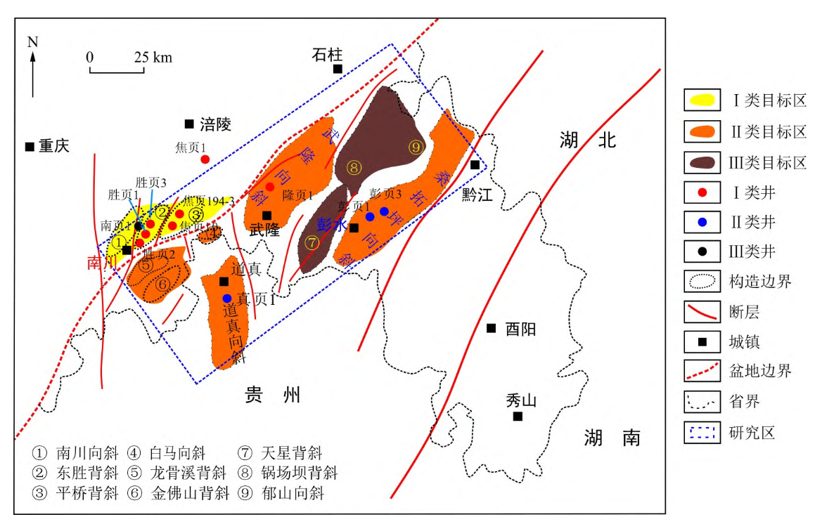 渝东南盆缘转换带处于构造变形强烈区域,相对于盆内五峰组-龙马溪组页岩气富集过程,需要对保存条件的评价提出更高的要求。论文针对渝东南盆缘转换带复杂的构造格局,通过对构造演化、抬升剥蚀、断裂发育、构造样式、顶底板条件、地层压力等多因素叠合分析,开展了保存条件的研究。结果表明,盆缘转换带抬升剥蚀严重,断裂发育,形成了一系列残留构造样式;距离剥蚀边界、大断层近的区域内,五峰组-龙马溪组均有天然气逸散的情况,地层压力系数普遍小于1.2;桑拓坪向斜、武隆向斜大断裂发育较少,五峰组-龙马溪组在远离剥蚀区具有良好的页岩气保存条件,推断后期抬升剥蚀和断裂发育是天然气散失后常压形成的主要原因;尽管由盆内向盆外地层压力系数由超压转变为常压,但构造形成了窄陡残留背斜、宽缓残留向斜和残留斜坡的页岩气保存形式。在确定保存条件影响因素基础上,建立了渝东南盆缘转换带常压页岩气保存条件的评价标准,划分了3类有利目标区。