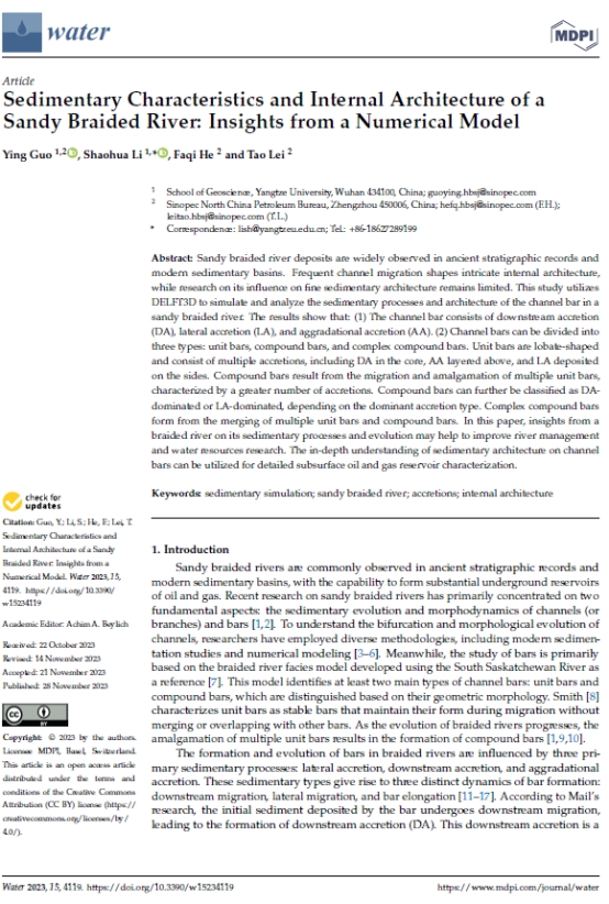 郭颖博士在期刊《Water》上发表题为“Sedimentary Characteristics and Internal Architecture of a Sandy Braided River: Insights from a Numerical Model”的研究论文。嘟嘟成人网