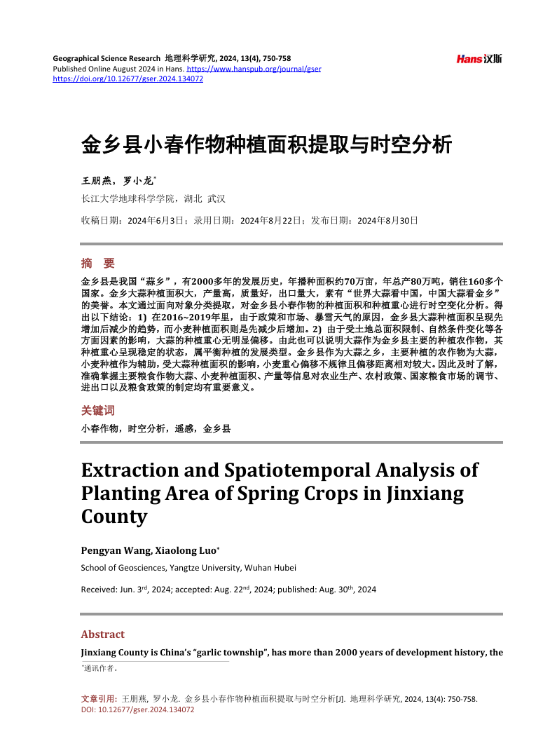 硕士生王鹏燕在中文期刊《地理科学研究》上发表了题为“金乡县小春作物种植面积提取与时空分析”的研究论文。嘟嘟成人网