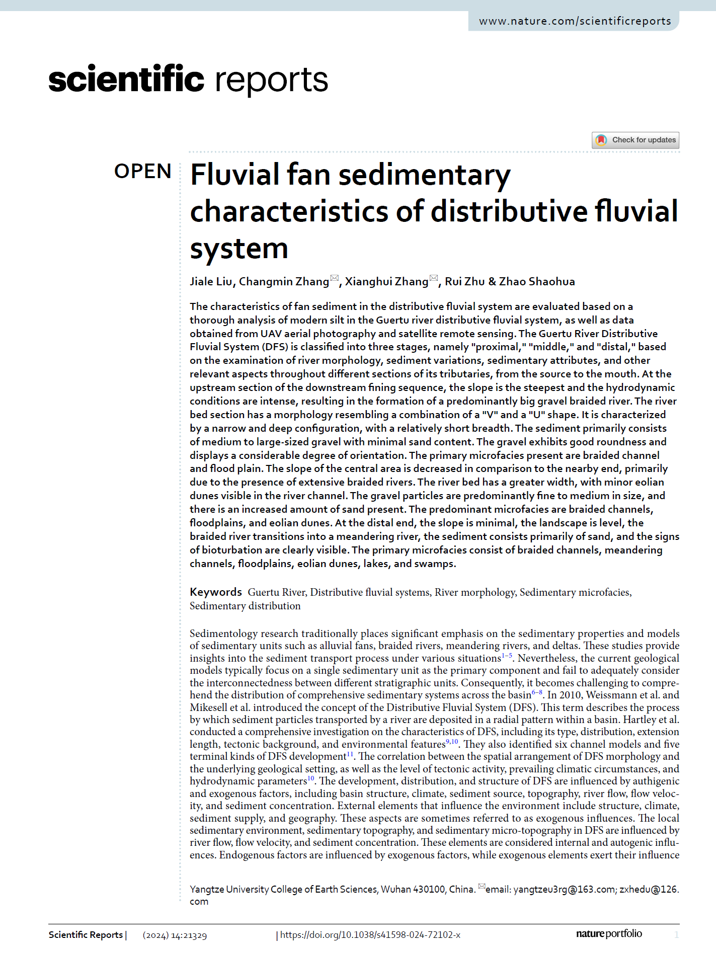 博士生刘家乐在期刊《scientific reports》上发表题为“Fluvial fan sedimentary characteristics of distributive fluvial system”的研究论文。嘟嘟成人网