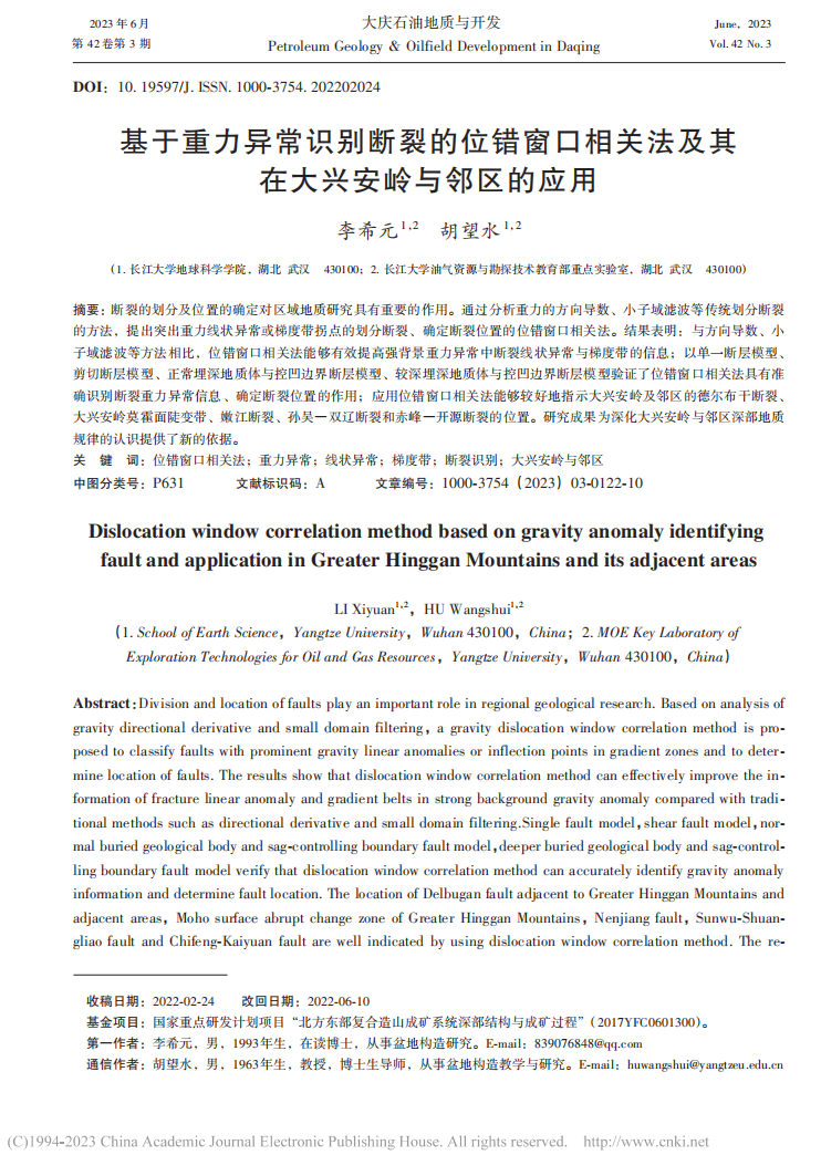 博士李希元在期刊《大庆石油地质与开发》上发表题为“基于重力异常识别断裂的位错窗口相关法及其在大兴安岭与邻区的应用”的研究论文。嘟嘟成人网
