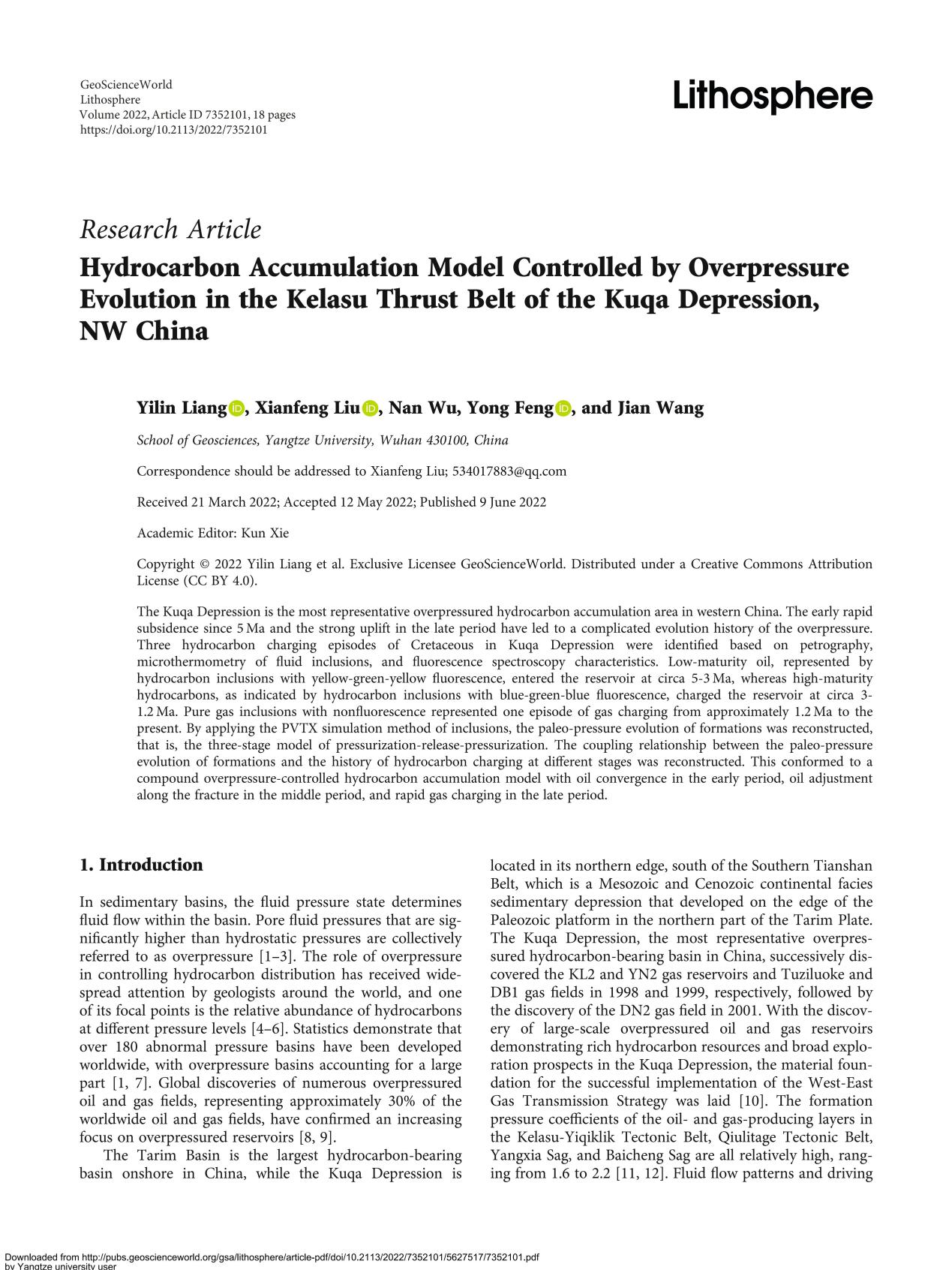 博士生梁祎琳在《LITHOSPHERE》上发表题为“Hydrocarbon Accumulation Model Controlled by Overpressure Evolution in the Kelasu Thrust Belt of the Kuqa Depression, NW China”的研究论文。嘟嘟成人网