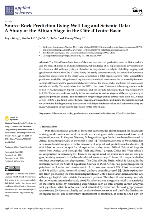 博士生王博宇在《Applied Sciences》上发表题为《Source Rock Prediction Using Well Log and Seismic Data:A Study of the Albian Stage in the Côte d’Ivoire Basin》的研究论文。嘟嘟成人网