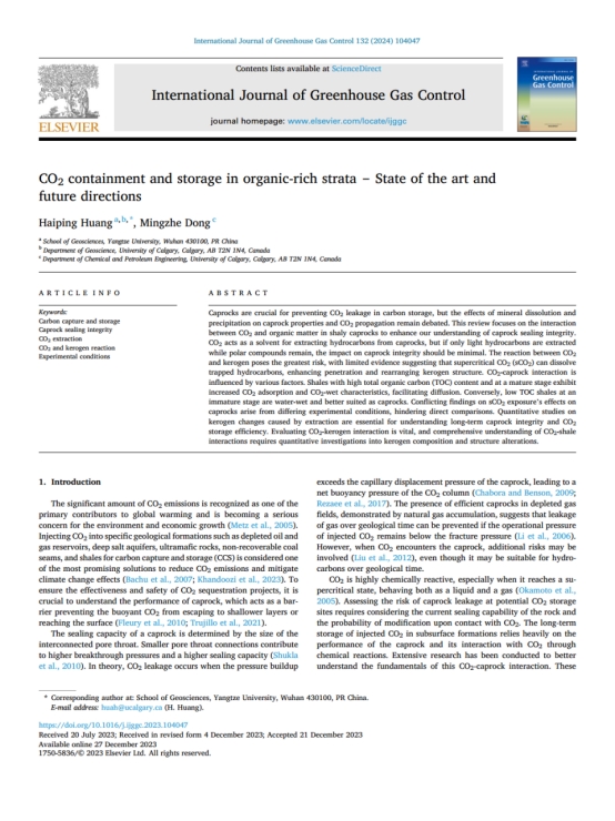 黄海平教授以第一作者身份在《International Journal of Greenhouse Gas Control》期刊发表题为“CO2 containment and storage in organic-rich strata ‒ State of the art and future directions”的研究论文,嘟嘟成人网