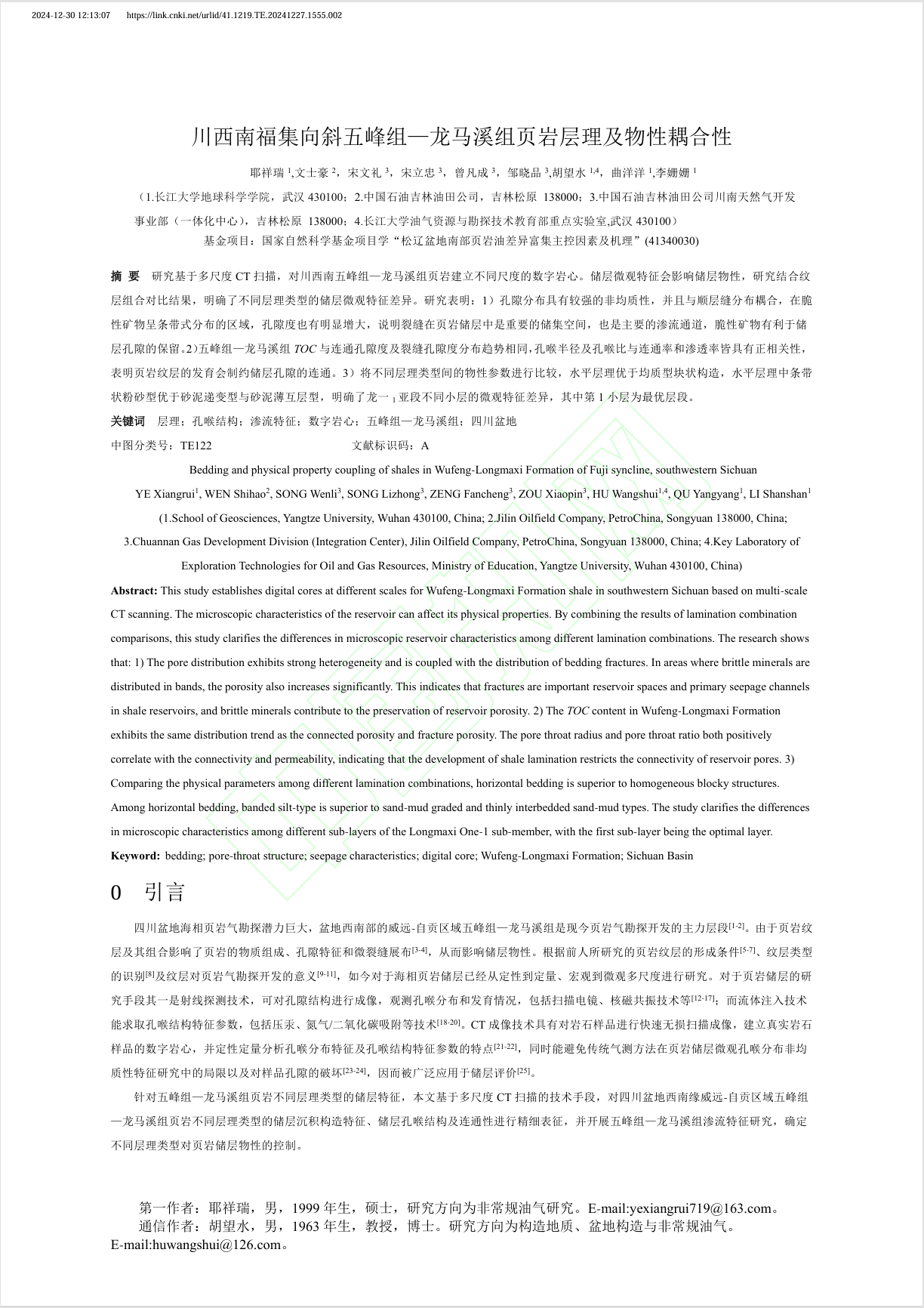 硕士生耶祥瑞在《断块油气田》上发表题为“川西南福集向斜五峰-龙马溪组页岩层理及物性耦合性”的研究论文。嘟嘟成人网
