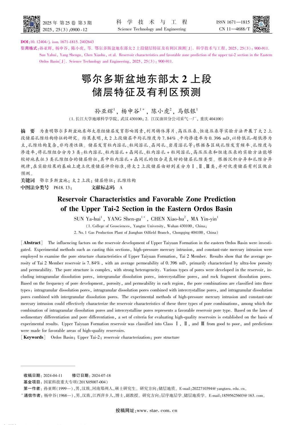 硕士生孙亚辉在《科学技术与工程》期刊上发表题为“鄂尔多斯盆地东部太2上段储层特征及有利区预测”的研究论文。嘟嘟成人网
