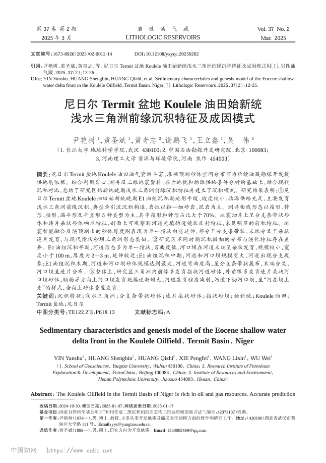 硕士研究生黄圣斌在期刊《岩性油气藏》上发表题为“尼日尔Termit盆地Koulele油田始新统浅水三角洲前缘沉积特征及成因模式”的研究论文。嘟嘟成人网