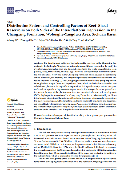 硕士生毕宇航在SCI收录期刊《Applied Sciences》上发表题为“Distribution Pattern and Controlling Factors of Reef–Shoal Reservoirs on Both Sides of the Intra-Platform Depression in the Changxing Formation, Wolonghe-Yangduxi Area, Sichuan Basin”的研究论文。嘟嘟成人网