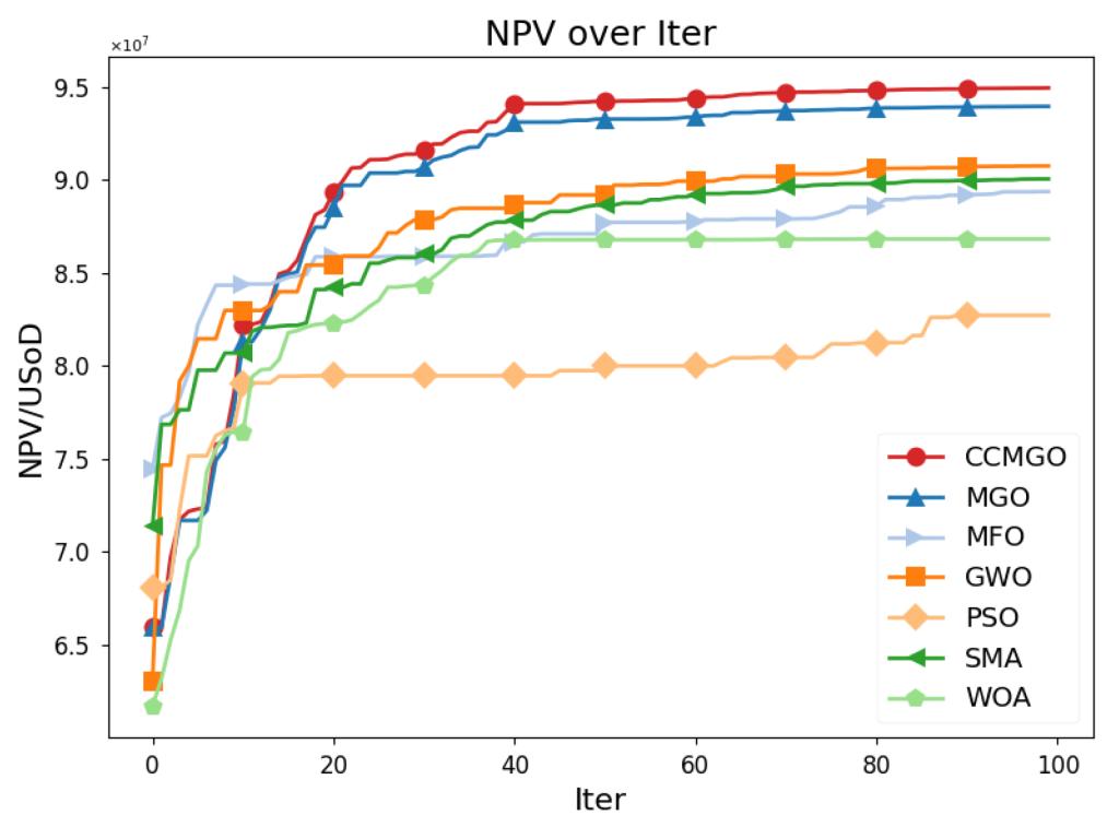 图1 不同算法的NPV在迭代过程中的收敛情况图