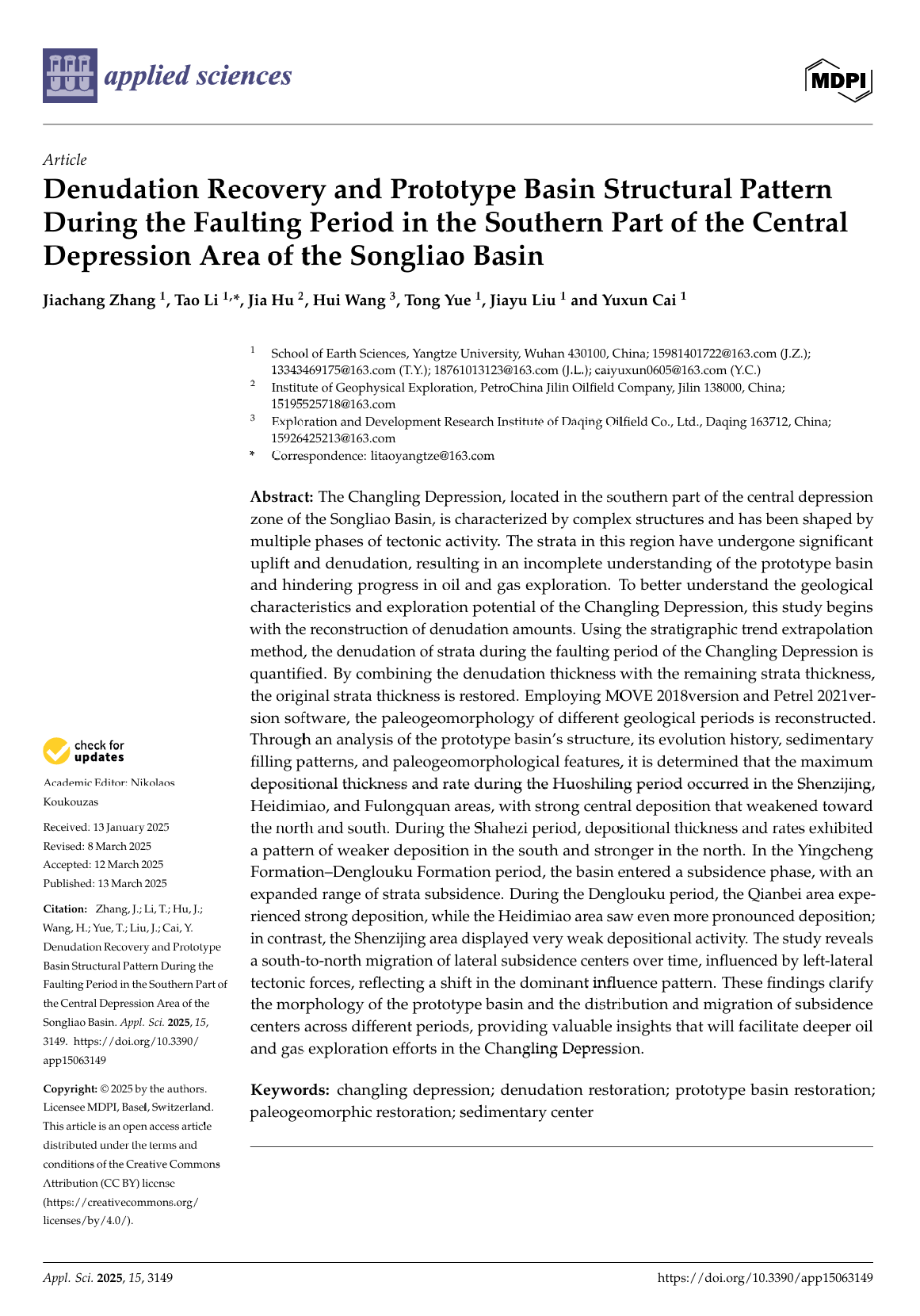 硕士研究生张珈畅在《applied sciences》上发表题目为“Denudation Recovery and Prototype Basin Structural Pattern During the Faulting Period in the Southern Part of the Central Depression Area of the Songliao Basin”的研究论文。嘟嘟成人网